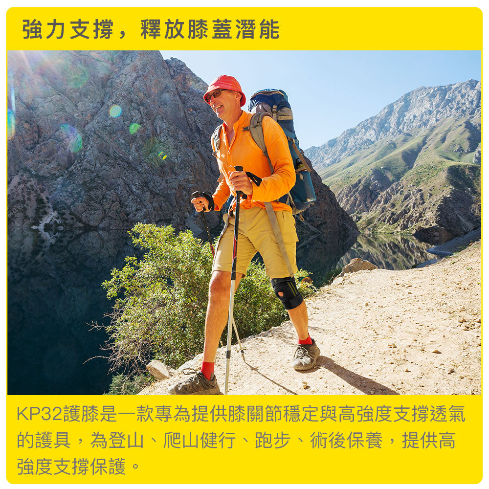 KP32護膝是一款專為需要膝蓋支撐與穩定性保護之需求者設計的全能性護膝。結合兩側雙金屬彈性支撐條、可調動態加壓拉帶與後膝窩透氣排汗設計,提供舒適、穩固、久戴不悶熱的穿戴體驗。特別適合從事登山健行、長跑訓練、久站工作或術後保養使用